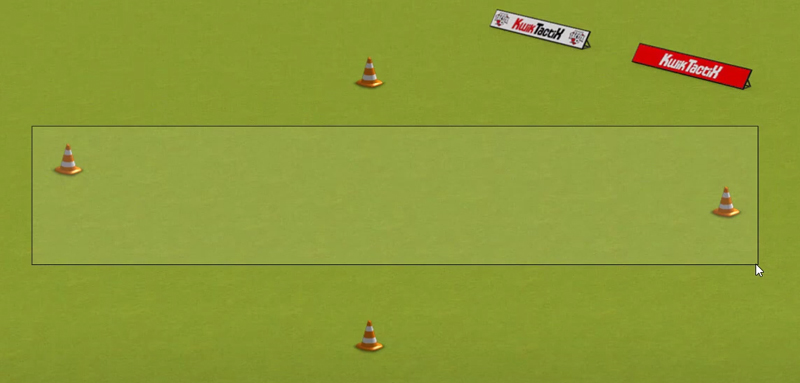Now move your cursor, so its close to the player marker foot on the canvas. Click and hold the mouse button in and drag the line towards cone 2. Release the mouse button when you are half way to the cone as shown below.