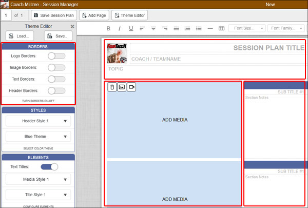 It allows you to style your session plans, then save the styles as themes to use over and over again.