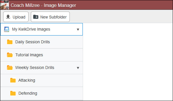 Notice that the "Daily Session Drills" is created as a root subfolder in the image library and doesn't have any subfolders.