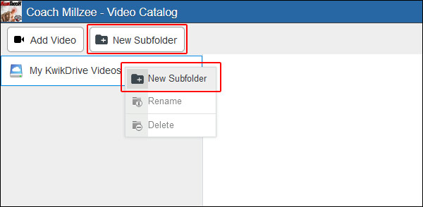 2. Right click "My KwikDrive Videos" and select "New Subfolder"