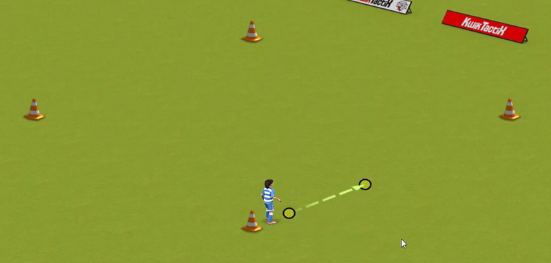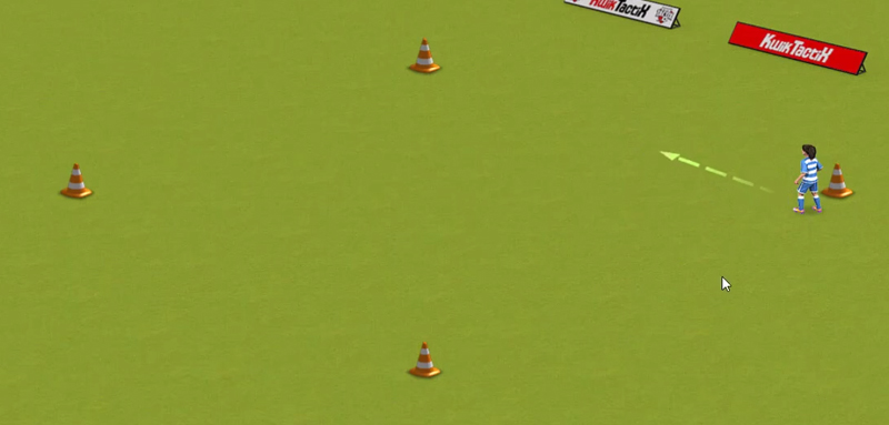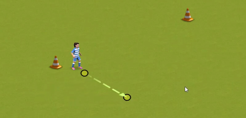 Now move your cursor, so its close to the player marker foot on the canvas. Click and hold the mouse button in and drag the line towards cone 2. Release the mouse button when you are half way to the cone as shown below.